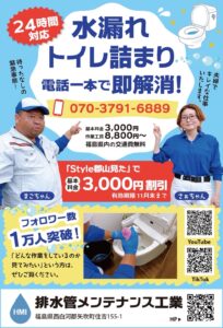 直観的に、これだと思いました!えっ?毎月5万部?って事は毎月5万人が排水管メンテナンス工業の24時間緊急対応を知って頂ける!